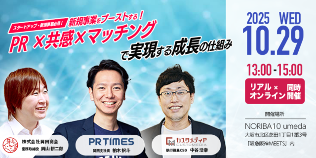 2025年10月29日(水)PR TIMES社、岡田商会社3社でイベント!「新規事業をブーストする!PR × 共感 × マッチングで実現する成長の仕組み」を開催