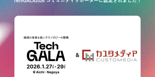 カスタメディアは1月26日(火)〜1月29日(木)に愛知県で開催されるテクノロジーの祭典『TechGALA』のブース出展&コミュニティサポーターに認定されました。また、弊社のコミュニティマネージャーのタンクトップ渡辺さんがイベントに参加いた…
