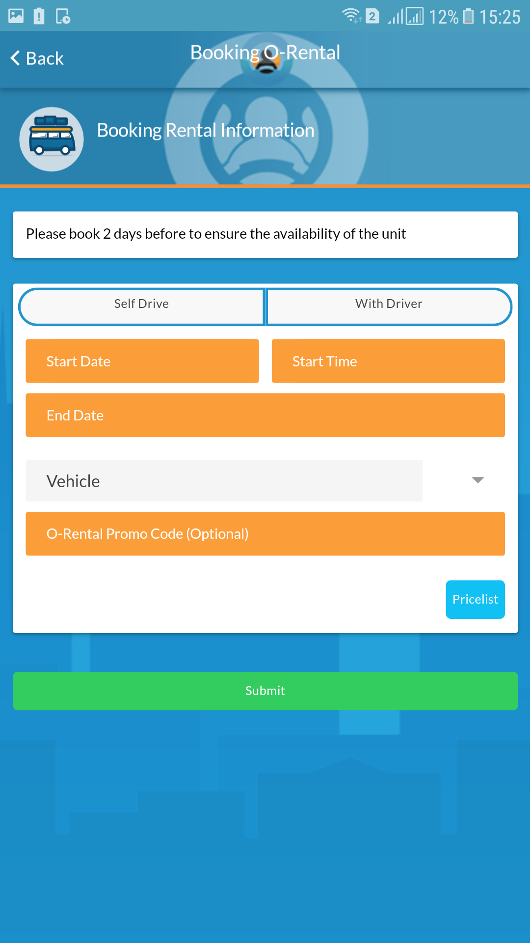 are required to choose the desired type of transportation, there are bikes, MPV cars, microbus