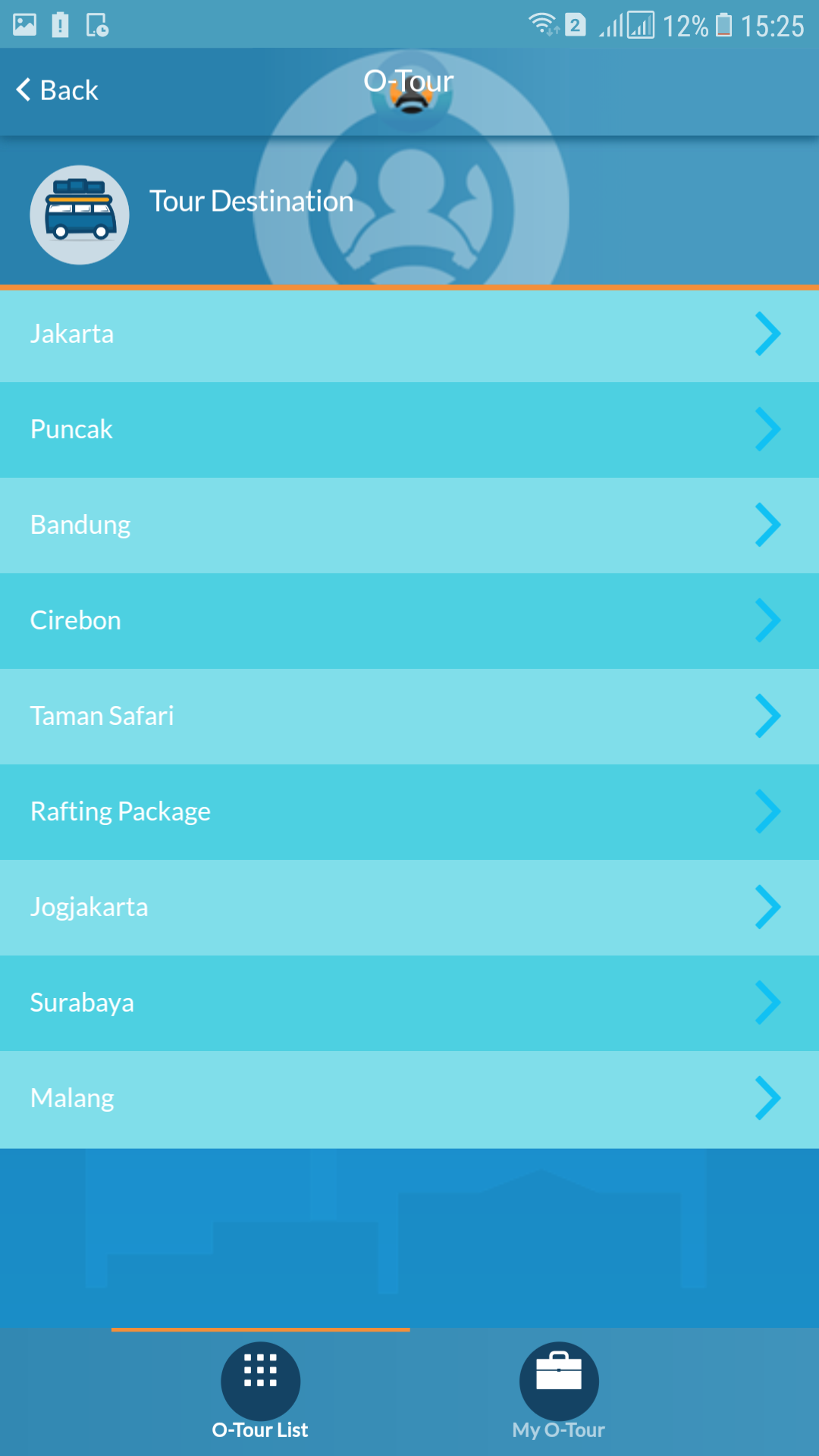 O-Tour, untuk pengguna yang ingin melakukan tour ke suatu daerah dan butuh tumpangan.