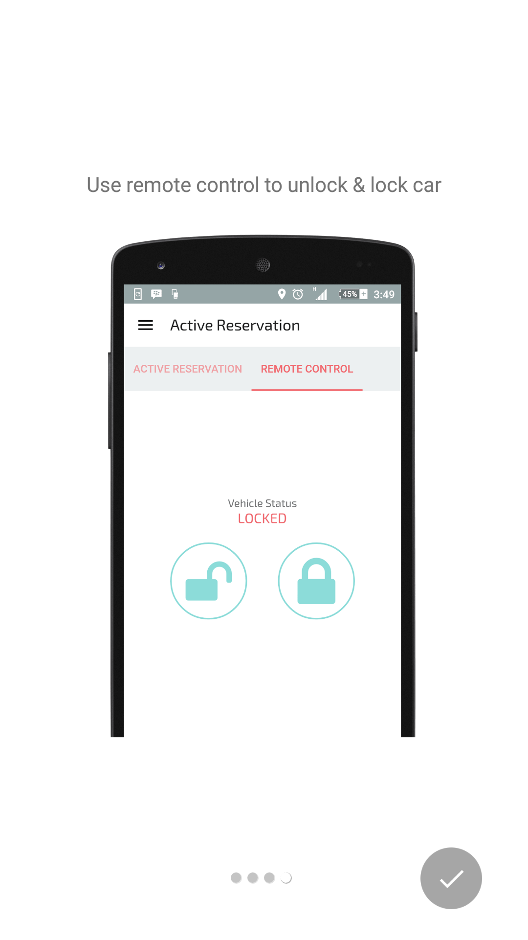 利用可能な車の1つを選択すると、ユーザーはBluetoothで起動された仮想の「車のキー」にアクセスして車をロック解除します。 ユーザーが車内に入ると、エンジンを始動するために車の中にある「実車」キーで、車両の使用を開始することができます。