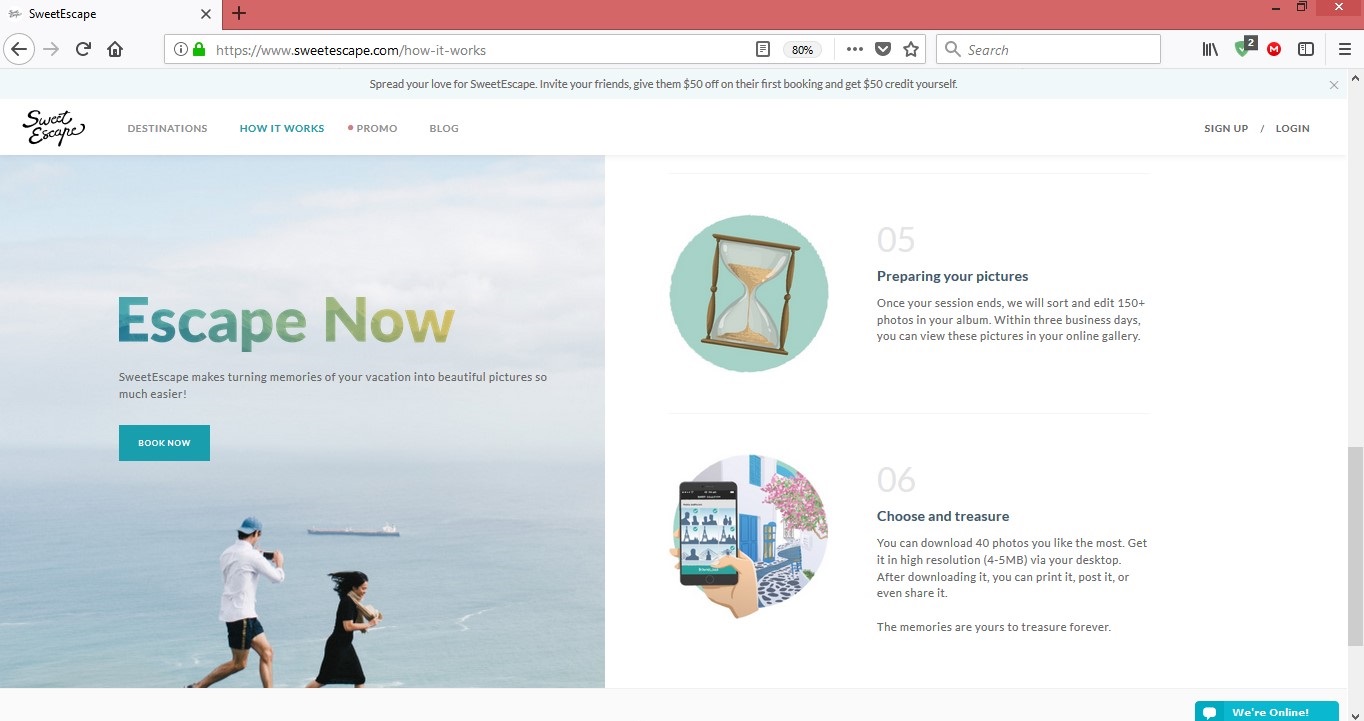 SweetEscape web page.