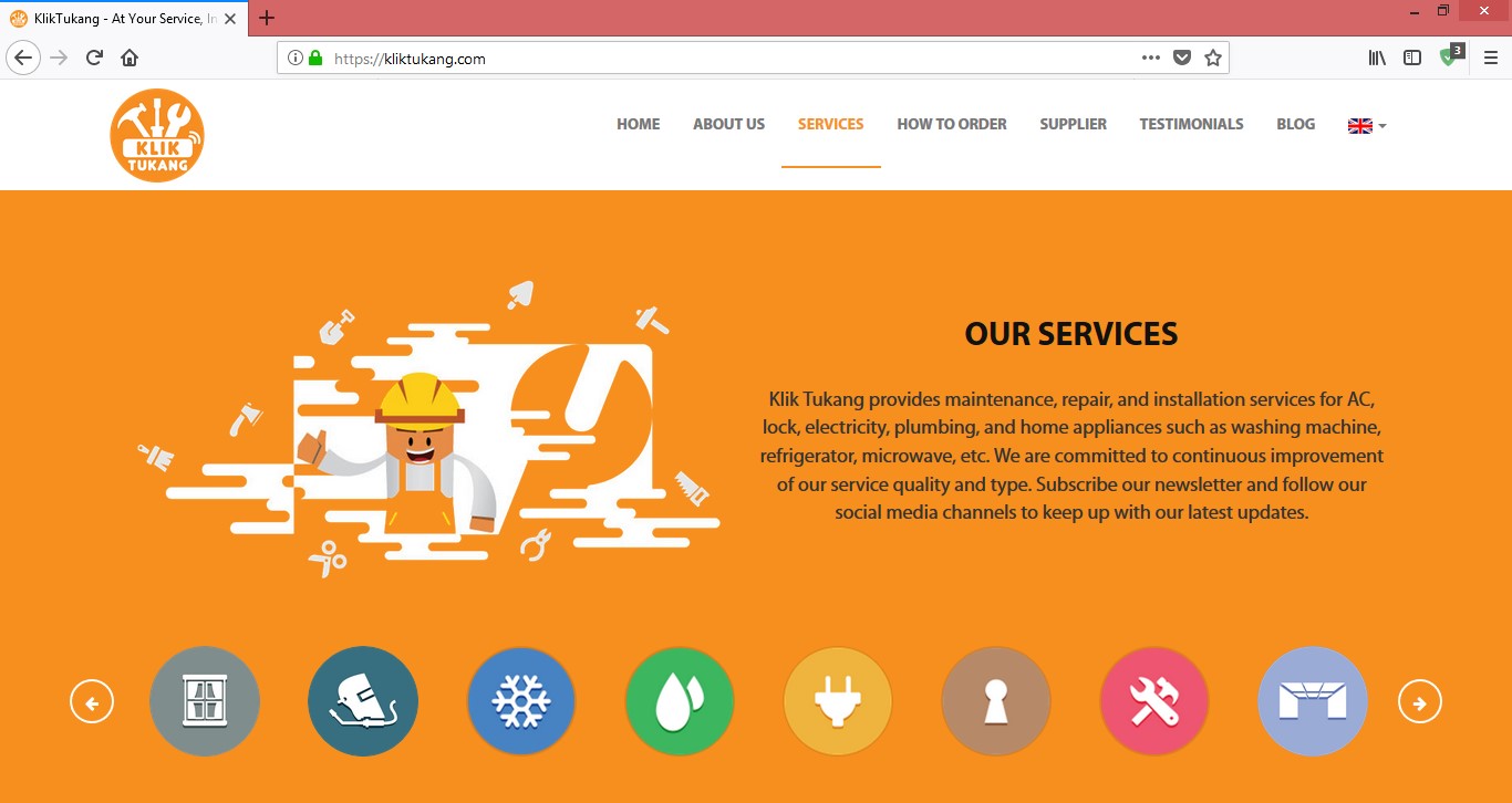 The Klik Tukang online technician matching service application was inaugurated in July 2015.