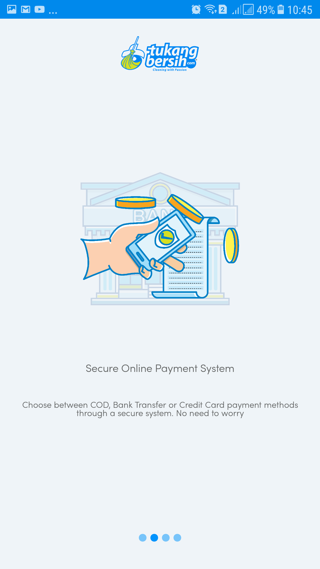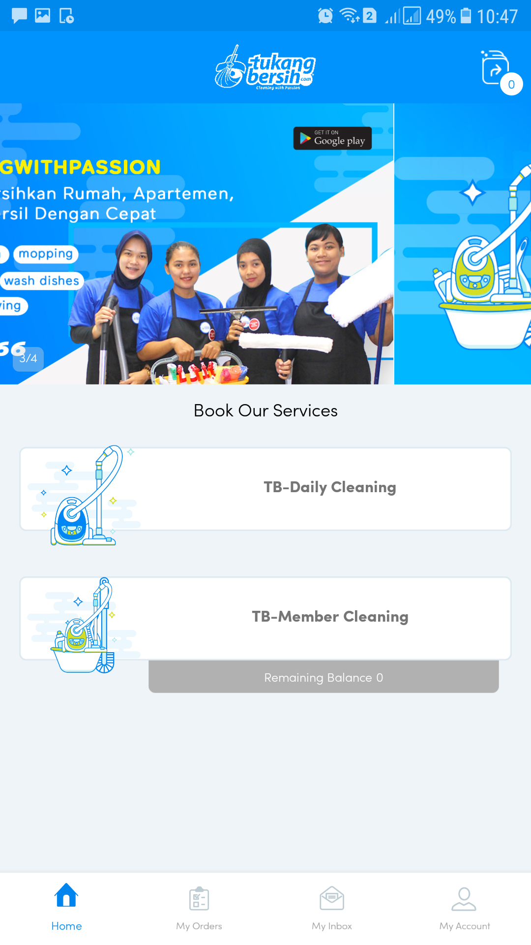 mengunduh aplikasi tukangbersih di playstore. Setelah itu, login dengan registrasi, pilih