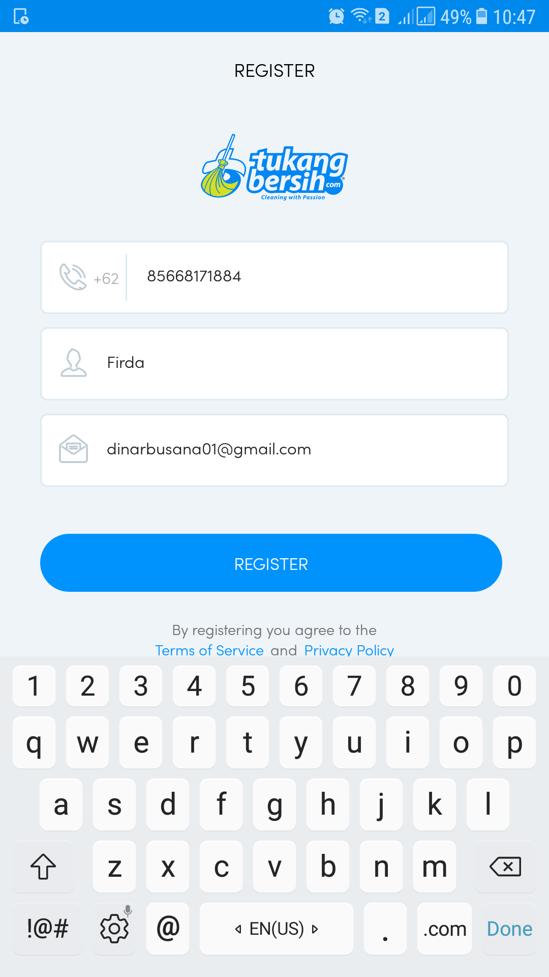 申し込みするには、Tukangbersihアプリをダウンロードするだけです。