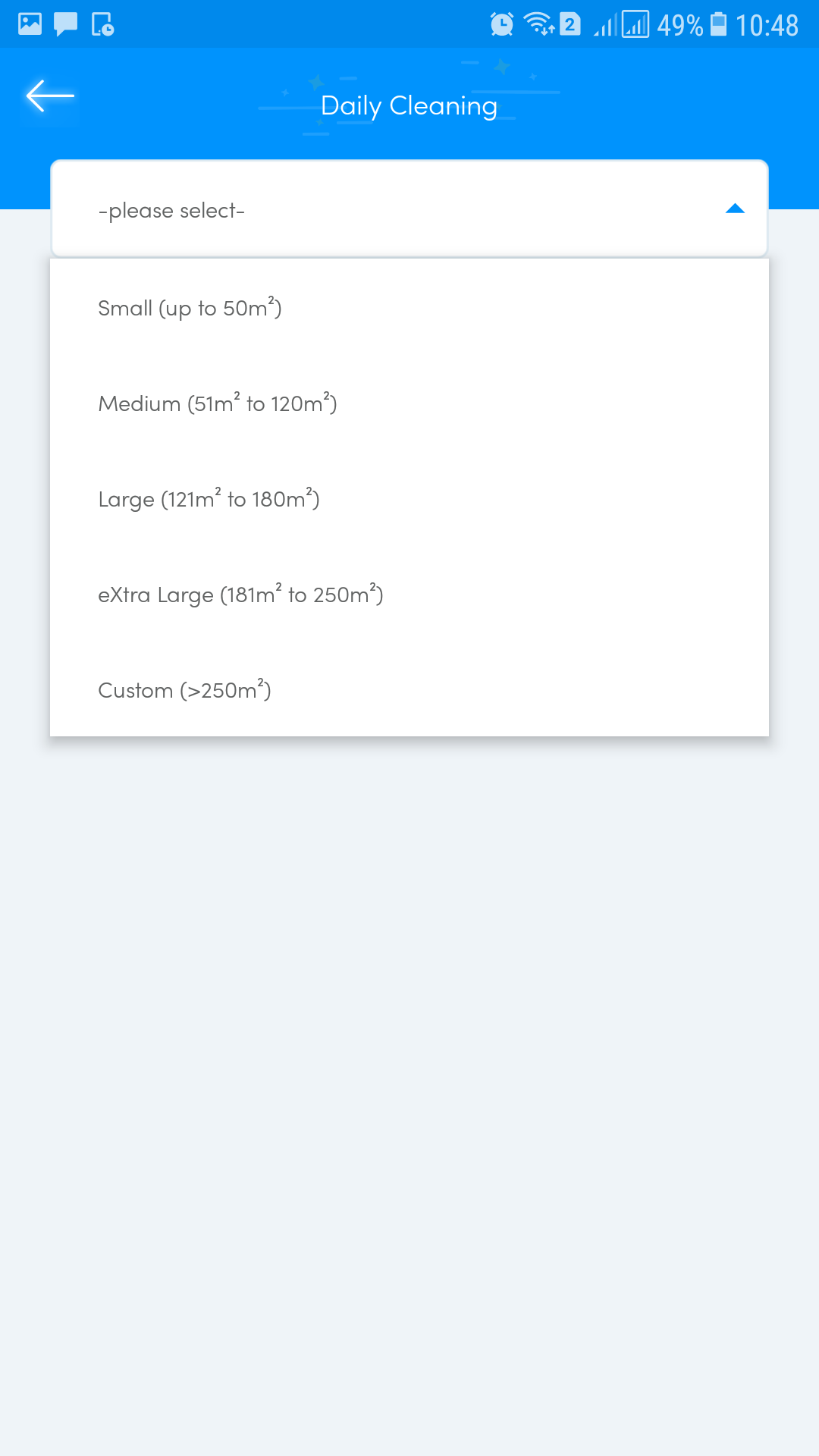 その後、登録してログインし、必要なサービスを選択し、清掃するスペース/部屋の量を選択します。