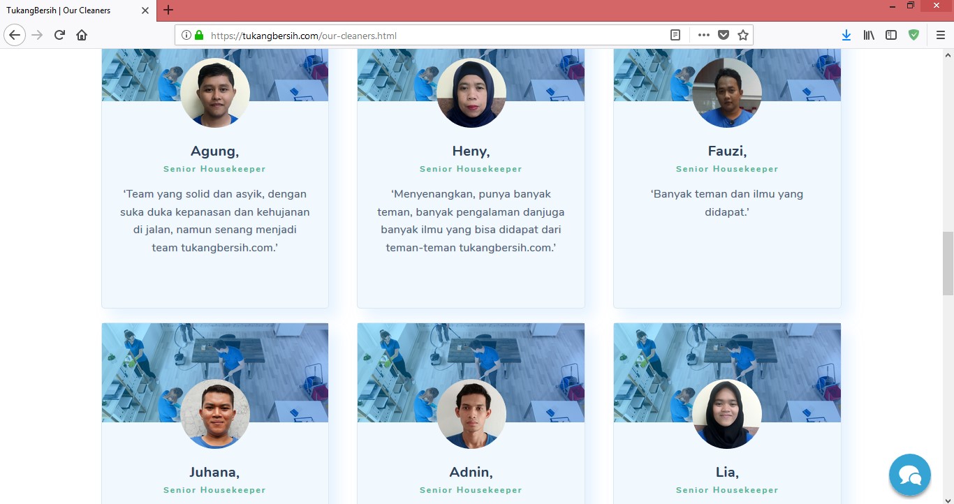 hospitality field by following the training from the Tukangbersih.com team.