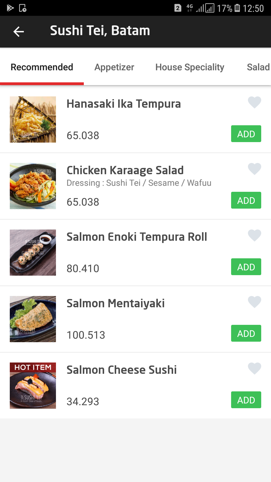 Usually I order one serving of fried chicken and rice or snacks like kebabs. After selecting the food