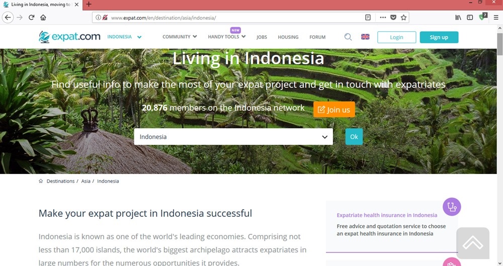 そのなかで、インドネシアの駐在員の生活ガイドになる「expat.com」というウェブサイトがあります。