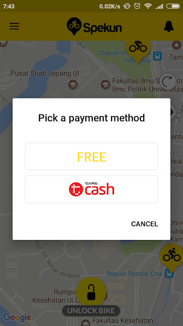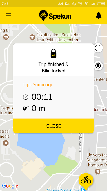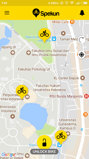 Bahasa Indonesia Mewujudkan Kampus Pintar & Hijau bersama SPEKUN Saat ini, layanan bike sharing di Indonesia jumlahnya masih sedikit. Di Jawa barat, bike sharing baru ada di dua kota. Yaitu di Depok dan Bandung. Salah satu layanan bike sharing yang sedang hangat dibicarakan adalah layanan Spekun di Universitas Indonesia. Spekun ini adalah singkatan dari ‘Sepeda Kuning’. Universitas Indonesia (UI) dan provider jaringan telepon Telkomsel menjadi yang pertama di Indonesia dalam melakukan uji coba implementasi teknologi NB-IoT (Narrowband Internet of Things) di dalam sistem bike sharing kampus. Konsep bike sharing di Universitas Indonesia (UI) ini dilakukan sebagai bagian dari upaya Telkomsel dalam mengakselerasi terbentuknya ekosistem IoT di Indonesia, seiring pesatnya perkembangan IoT di masa mendatang. Konsep bike sharing ini adalah layanan peminjaman sepeda kepada publik dalam waktu tertentu dari satu titik lokasi ke titik lokasi lain. Dengan konsep ini, peminjaman berbasis aplikasi “Spekun” didampingi penyediaan tiang atau dock parkir berbasis radio-frequency identification (RFID) sehingga sepeda hanya bisa diparkir di dock parkir tersebut. Spekun telah dilengkapi dengan perangkat Smartlock yang tertanam di sepeda. Sistem ini kompatibel dengan teknologi konektivitas NB-IoT yang memungkinkan semua Spekun berkomunikasi dengan server operator sehingga operator dapat melacak sepeda sambil mengetahui jumlah distribusi sepeda di semua area. Pengguna sepeda perlu memindai kode QR di keranjang depan dengan menggunakan aplikasi Spekun. Smartlock akan terbuka secara otomatis dan Spekun siap digunakan. Bagi mahasiswa Universitas Indonesia harus menunjukkan kartu mahasiswa kepada petugas yang berjaga di pool untuk bisa menikmati ke tempat yang ingin dituju. Layanan bike sharing Spekun ini memegang peranan penting untuk mewujudkan visi smart & green campus di Universitas Indonesia. Kedepannya diharapkan layanan bike sharing ini bisa diimplementasikan juga di lingkungan masyarakat luas. English SPEKUN To Realize a Smart & Green Campus Currently, the existence of bike sharing services in Indonesia is still in small number. In West Java, bike sharing is only exist in two cities, in Depok and Bandung. One of the recently launched bike-sharing services is Spekun service at the University of Indonesia. Spekun means yellow bike, the color of the bike is yellow. The University of Indonesia (UI) and Telkomsel (a telephone network providers) are the first in Indonesia to test the implementation of the Narrowband Internet of Things technology (NB-IoT) within the campus bike-sharing system. The concept of bike sharing at Universitas Indonesia (UI) is done as part of Telkomsel's efforts in accelerating the formation of IoT ecosystem in Indonesia, as the rapid development of IoT in the future. The concept of Bike sharing is bicycle lending service to the public within a certain time from one point of location to another location point. With this concept, the "Spekun" application is accompanied by the provision of radio- frequency identification (RFID) based parking docks so that bicycles can only be parked in the parking dock. Spekun has been equipped with Smartlock device embedded on the bike. This system is compatible with NB-IoT connectivity technology that enables all Spekun to communicate with the operator’s server so that the operator can track the bicycle while knowing the amount of bicycle distribution in all areas. The bike user needs to scan QR code on the front basket by using the Spekun application. The Smartlock will open automatically and the Spekun is ready to use. For students of University of Indonesia, they must show the student card to the officer who guard at the pool to be able to enjoy to where to go. Spekun bike sharing service plays an important role to realize the vision of smart & green campus at the University of Indonesia. In the future, it is expected that this bike sharing service can be implemented also in the wider community.