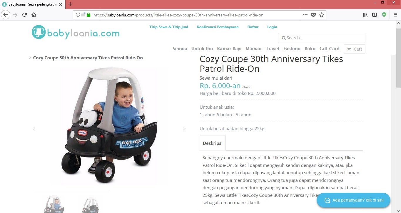 Bahasa Indonesia Berbagi Pemakaian Peralatan Bayi Melalui Babyloania.com Harga yang mahal dan pemakaian hanya sebentar kadang menjadi pertimbangan bagi para orangtua untuk membeli perlengkapan bayi. Solusi untuk tetap bisa memakai perlengkapan bayi tanpa harus membeli adalah sharing baby equipment. Di Indonesia sudah banyak layanan sharing pemakaian perlengkapan bayi secara online. Salah satunya adalah situs babyloania.com. Babyloania.com adalah salah satu situs yang cukup direkomendasikan bagi para ibu yang ingin sharing pemakaian perlengkapan bayi. Jenis kebutuhan bayi sangat mudah ditemukan di babyloania, karena situs ini terorganisir dengan baik. Disini kita bisa meminjam perlengkapan untuk ibu, kamar bayi, travel, fashion maupun buku. Harga peminjaman setiap bulan pun sudah tertera pada setiap barang.? Selain meminjam barang dari Babyloania, kita pun bisa sharing pemakaian perlengkapan bayi yang kita miliki dengan orang lain. Melalui program ‘Jasa titip sewa’ dengan mengunjungi situs https://babyloania.com/pages/titip-sewa-di- babyloania. Kemudian mengisikan peralatan yang ingin dititipkan untuk dipinjamkan melalui situs Babyloania. Tulis deskripsi produk tersebut secara rinci dan jelas. Tim Babyloania akan mereview dan melakukan eksaminasi pada benda tersebut, kemudian akan dihubungi lebih lanjut. Sangat mudah untuk menyewa produk di babyloania. Pertama kunjungi situs babyloania.com. Temukan perlengkapan yang Anda butuhkan, buat pesanan, kemudian lakukan pembayaran. Barang pesanan Anda akan diantarkan sampai ke rumah. Beberapa kelebihan yang ditawarkan Babyloania adalah produk yang disewakan sangat beragam dan lengkap. Tersedia juga alat-alat keselamatan bagi Ibu. Jaminan kebersihan sanitasi dari babyloania. Layanan service pengantaran dan juga pengambilan kembali. Babyloania menjadi solusi ekonomis untuk memenuhi kebutuhan bayi Anda. English Baby Equipments Sharing Through Babyloania.com The expensive price and the briefly usage sometimes become a consideration for parents to buy baby equipments. Such as stroller, car seat, baby walker and others. The solution to still be able to use baby equipments without having to buy is baby equipment sharing. In Indonesia there are many services that provide baby equipments sharing via online. One of them is the babyloania.com website. Babyloania.com is one of the sites that is quite recommended for mothers who want to share the use of baby equipments. All types of baby needs is very easy to find in babyloania, because the site is well organized. Here we can borrow supplies for mother, nursery, travel, fashion and books. And the loan prices per day/month is already listed on each item. In addition to borrowing products from Babyloania, we can also share the use of baby equipments that we have with others. Through the 'Leasing Services' feature by visiting the site https://babyloania.com/pages/titip-sewa-di-babyloania. Then fill in the equipment you want to be loaned through the Babyloania site. Write the product description in detail and clear. The Babyloania team will review and execute the item, then you will be contacted further. It is easy to borrow products in babyloania. First visit the site babyloania.com. Find the equipment you need, make an order, then make a payment. Your order will be delivered to your home. The delivery service is very efficient. There are some advantages that offered by Babyloania. The products are very diverse and complete. There are also safety tools for Mom. Babyloania gives a hygiene sanitation for every products. Service delivery and also take-back service. Babyloania becomes an economical solution to meet your baby's needs.