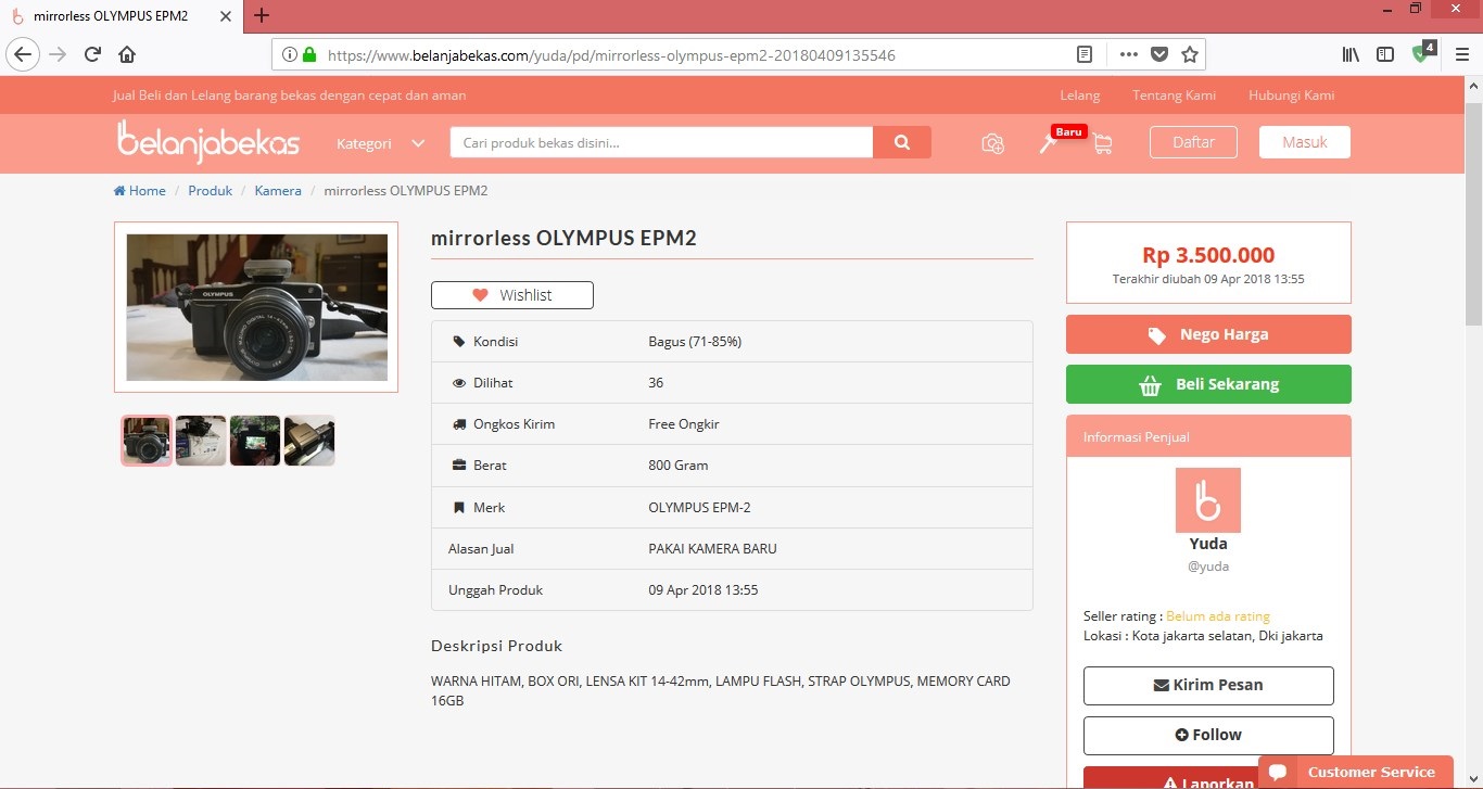 あなたの中古品の画像をBelanjabekasに入力して、商品の説明を入力します。