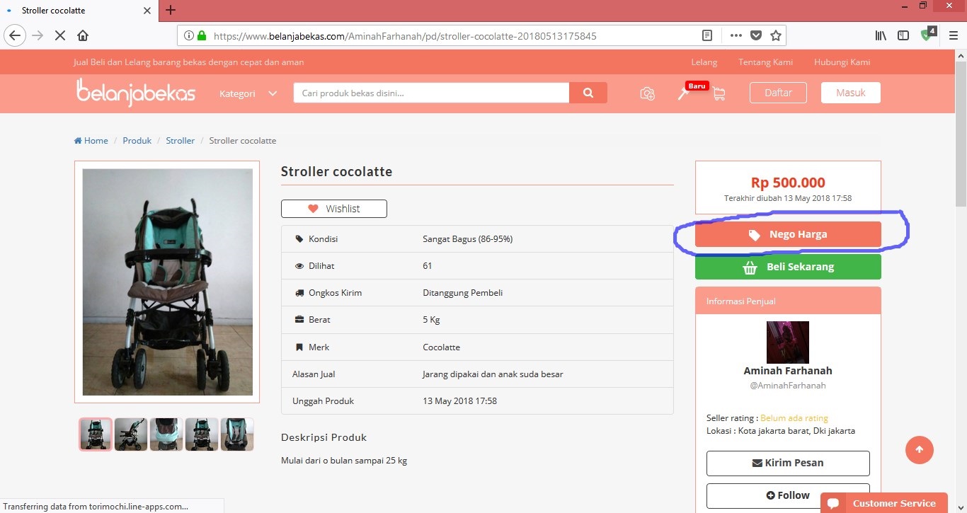 belanjabekas, you can also negotiate the price. Just click the icon ‘Nego Harga’, and you will discuss