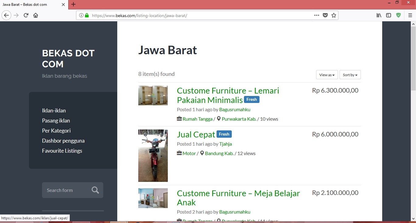 bekas.comには中古品の様々なカテゴリーがあります。