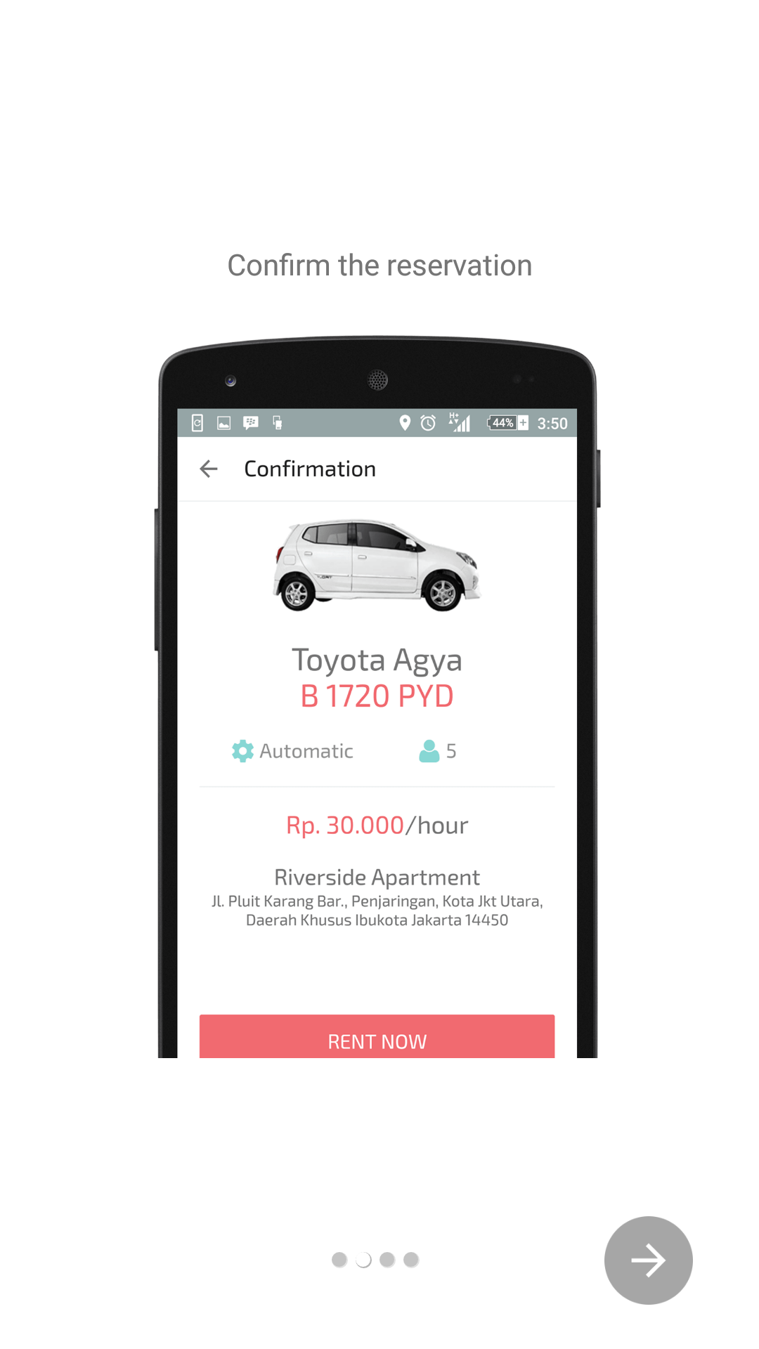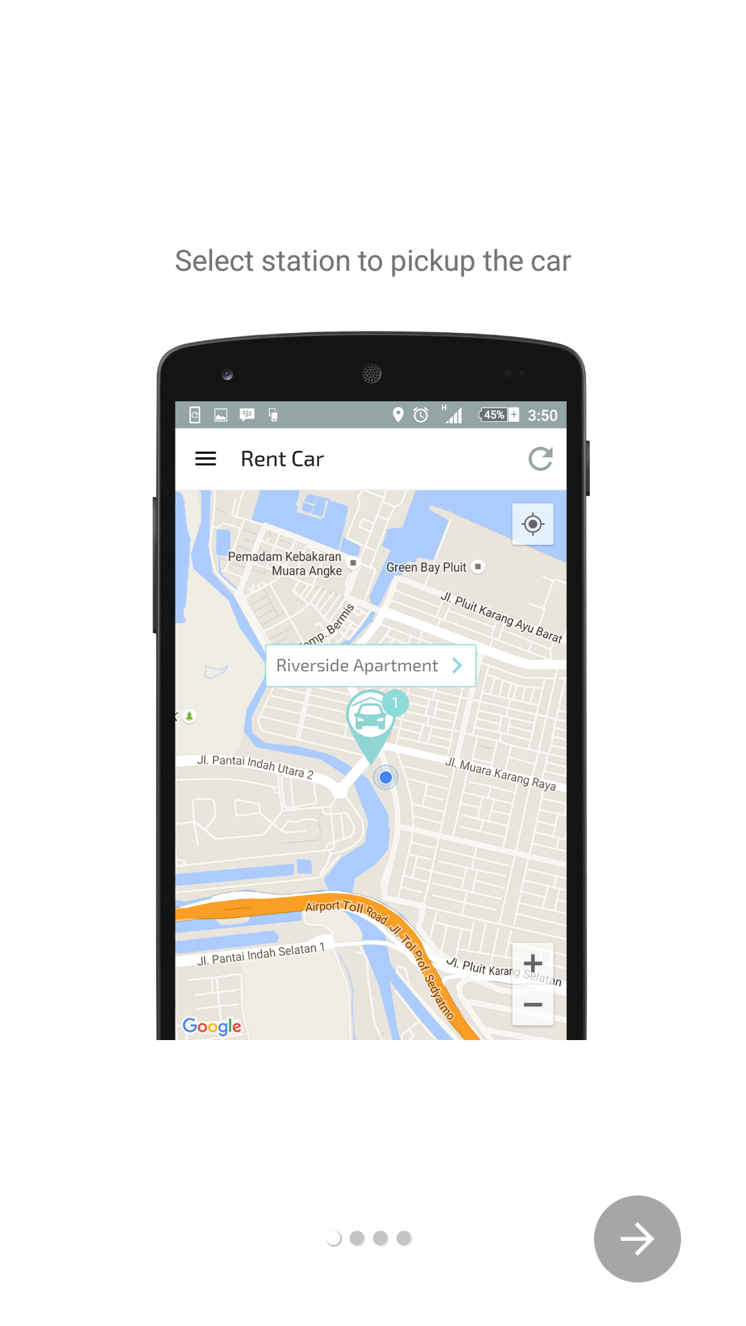 このサービスはカーシェアリングサービスで、現段階ではジャカルタのみで利用可能となっております。