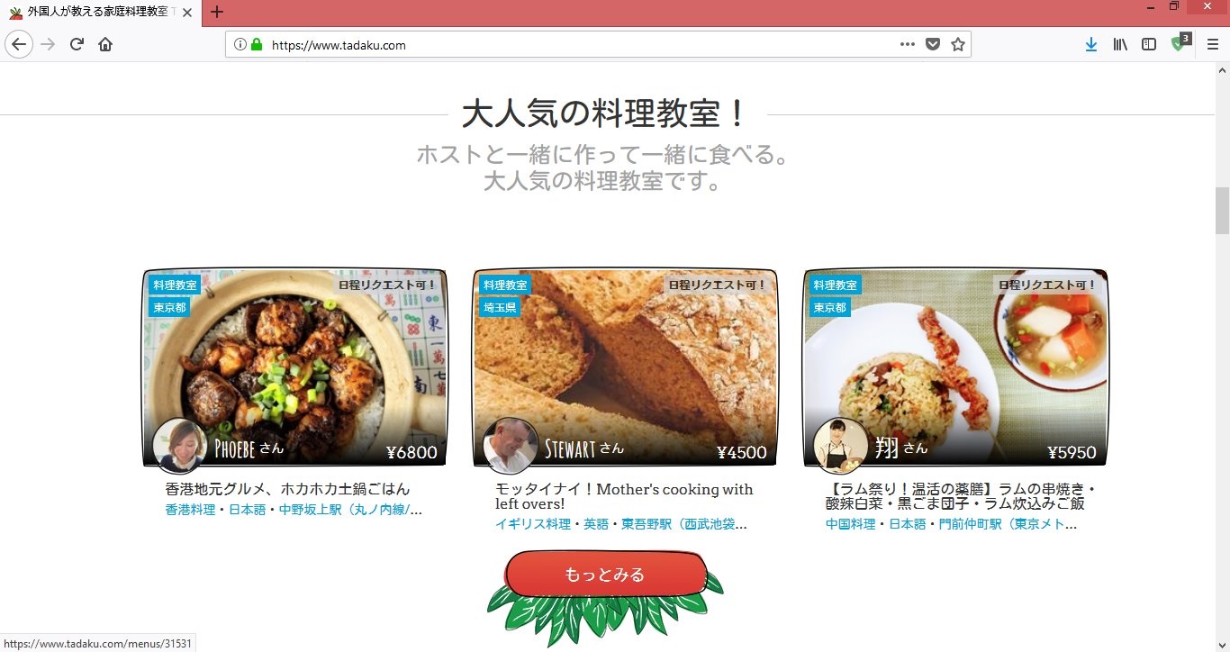 タダクは、外国人が自宅で教える料理教室のプラットフォームです。
