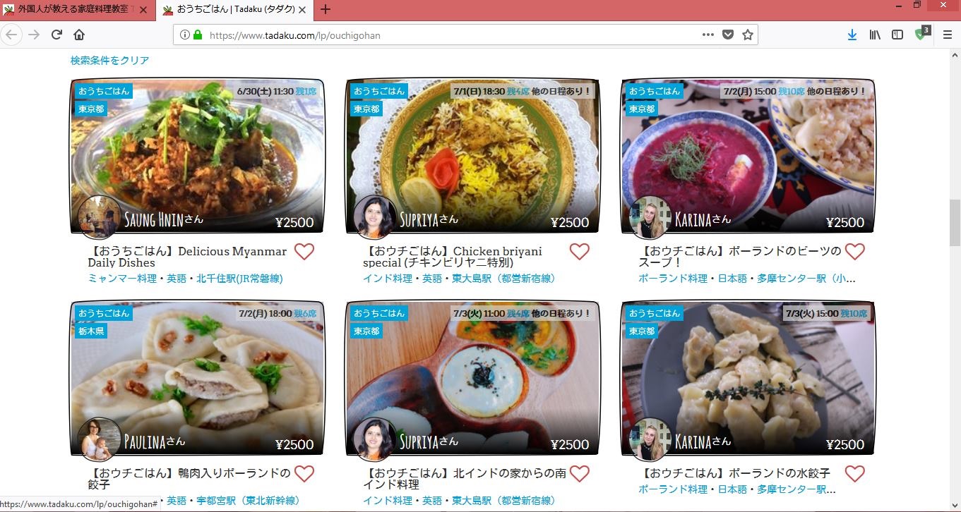 TADAKU is a platform where you can take cooking classes directly taught by foreigners. What's