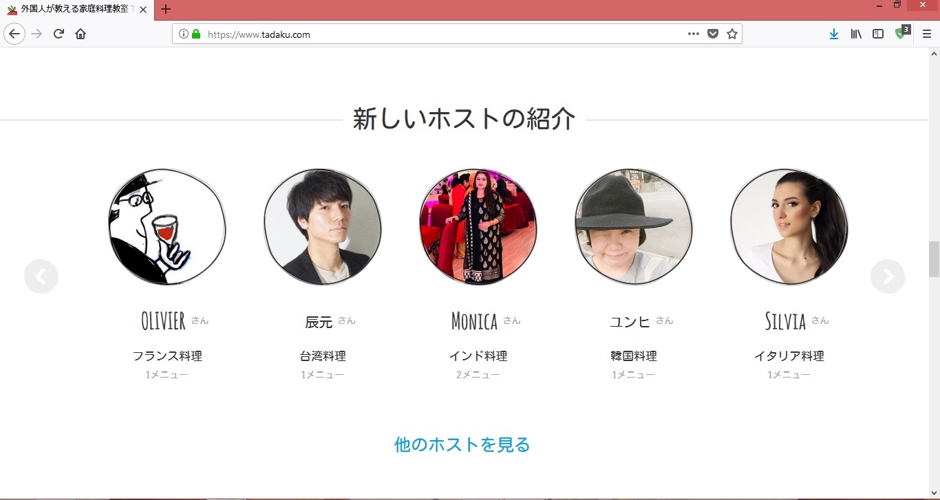 また200人以上のホストがタダクに参加しており、それぞれの料理教室で異なる体験をすることができます。