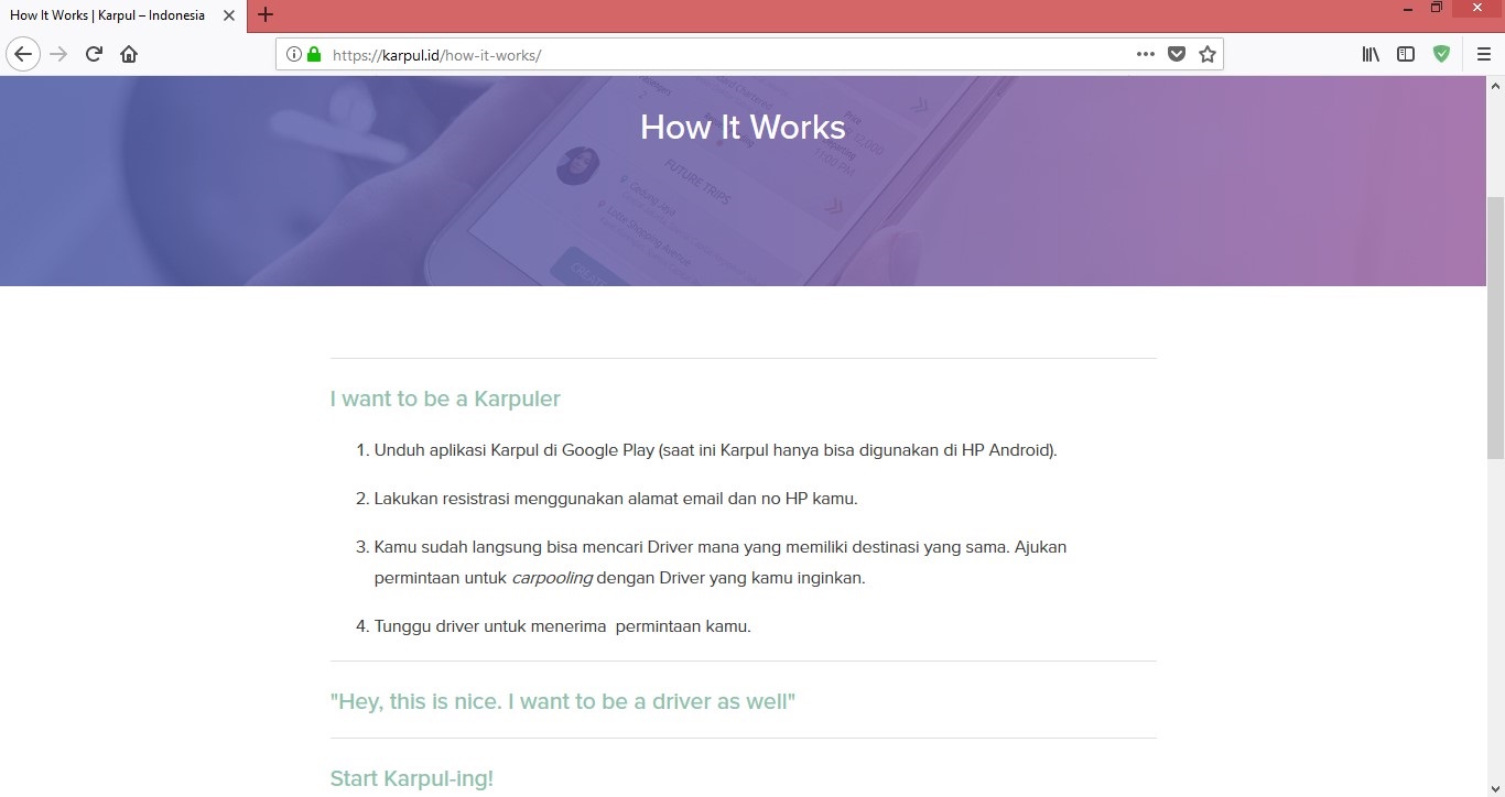 Jakarta. Jadi, bagi Anda yang berkunjung ke Jakarta bisa mencoba layanan Karpul ini.