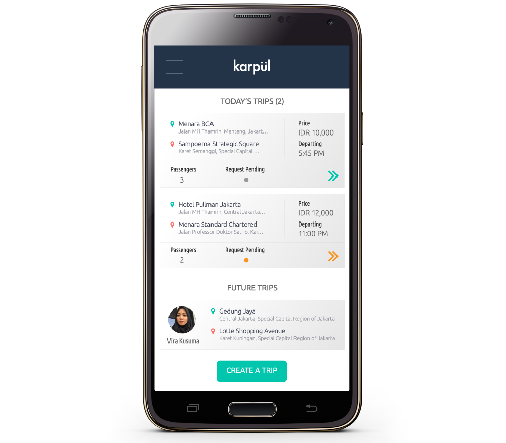 Karpul is an application that brings together vehicle owners with prospective passengers who