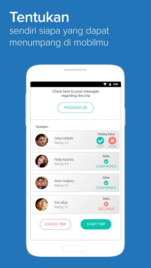 memutuskan berbagi kendaraan. Pada akhir trip, driver dan passenger saling memberikan