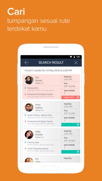 yang mempertemukan pemilik kendaraan dengan calon penumpang yang memiliki rute