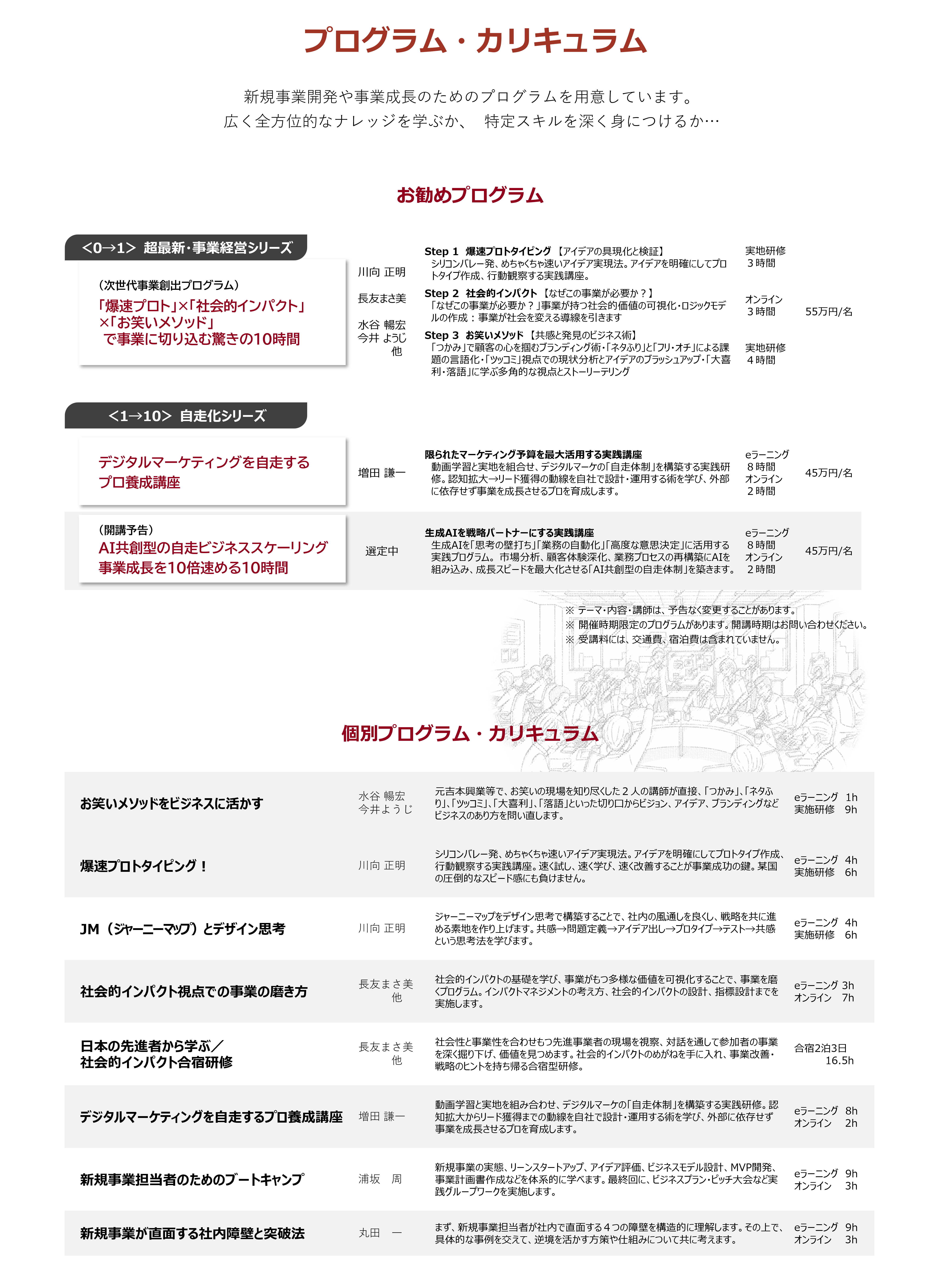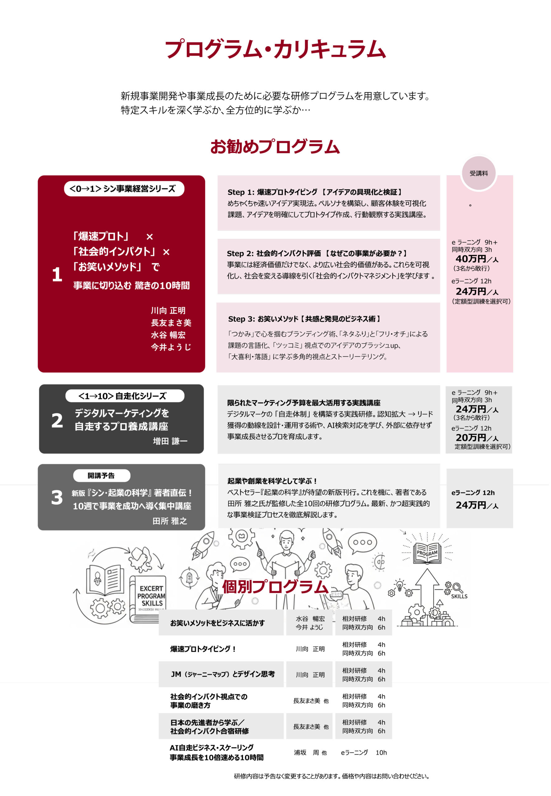 新規事業開発や事業成長に特化したリスキリング・プログラム。