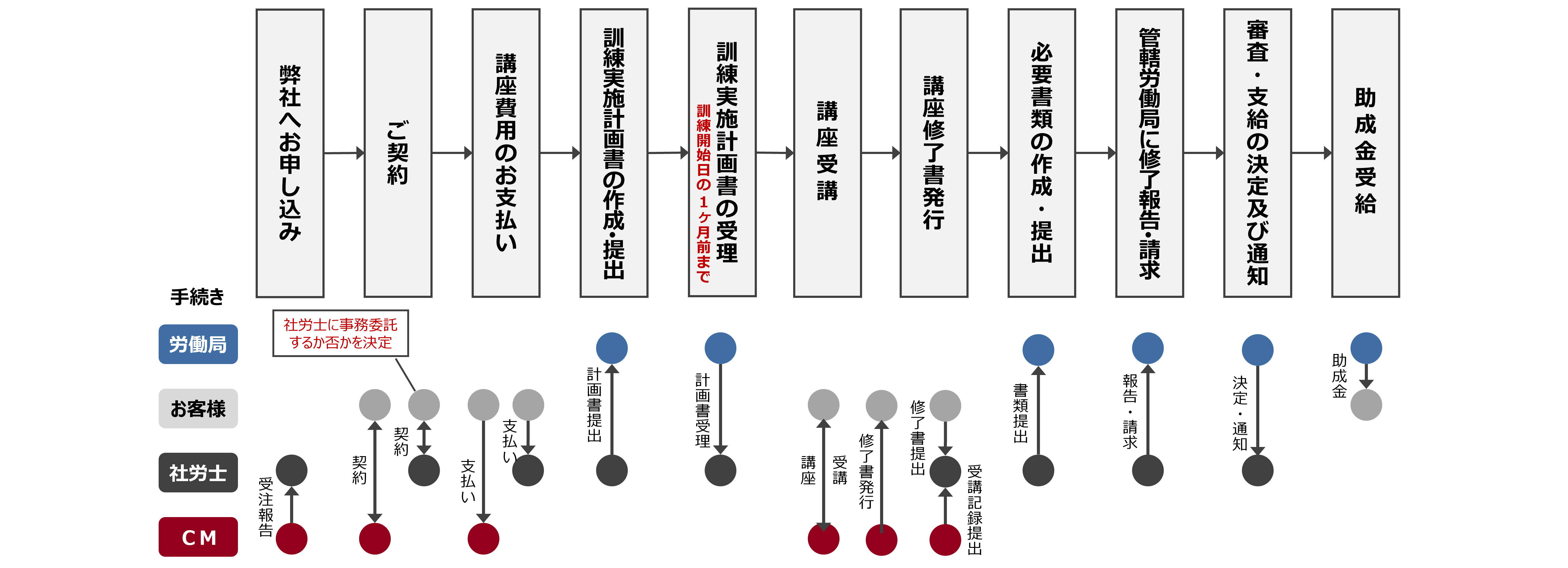 助成金を受給するには事業計画書や必要書類の作成、当局への提出などの諸手続きが必要です。助成金の受給をより確実にするためには、これら手続き等を社労士に依頼することをお勧めしています。カスタメディアが社労士事務所をご紹介することもできのすのでお尋ねください。