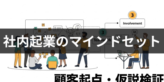 社内起業を成功させるためには、起業家のように考え、仮説検証を回し続ける「社内起業家マインドセット」を、日々の行動に落とし込むことが不可欠です。 本記事では、社内起業マインドセットの定義から必要性、育て方、実践ステップ、成功事例までを整理し、…