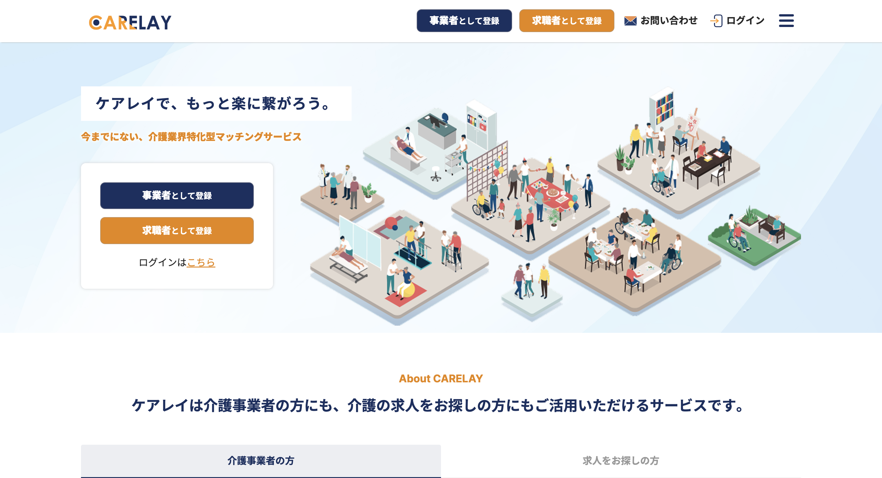ビジネスアイデアを形にした実例として、カスタメディアが構築を支援した介護事業者向けプラットフォーム「CARELAY(ケアレイ)」をご紹介します。