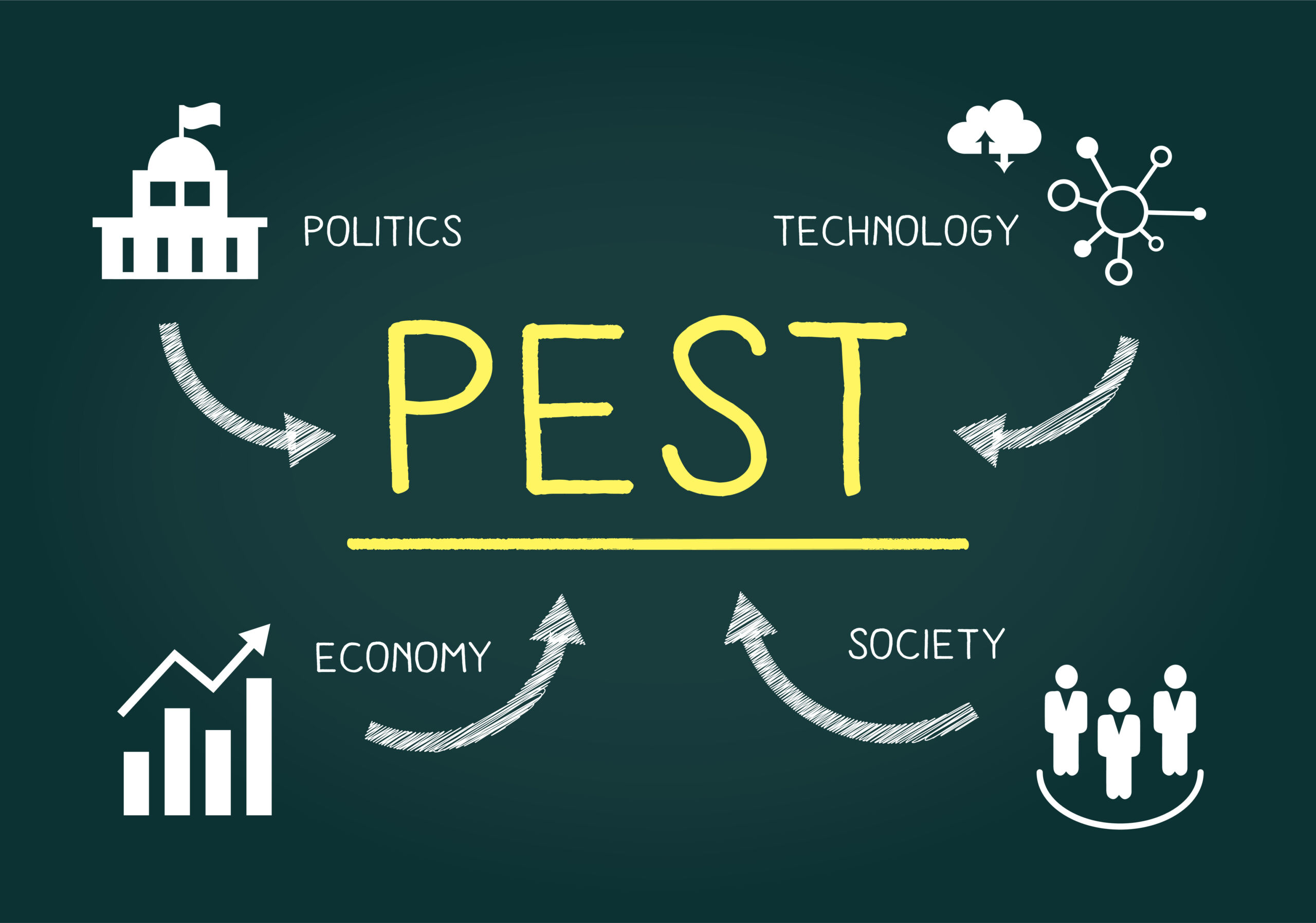 PEST分析とは、政治(P)・経済(E)・社会(S)・技術(T)の4つの視点から、自社を取り巻く外部環境の変化を分析する手法です。