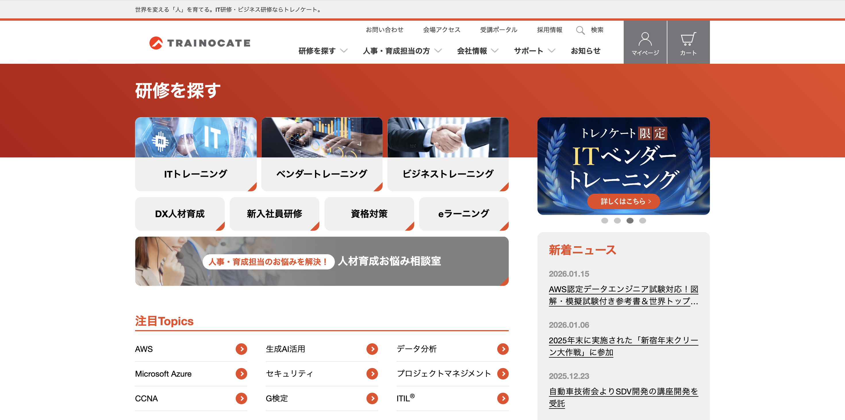 世界最大級のITトレーニング実績を持ち、AWSやMicrosoft等のグローバルベンダーから数多くの「Best Training Partner」賞を受賞しています。技術の深掘りだけでなく、ITをビジネス価値に変えるための「ITビジネススキル」を体系化しており、情報システム部門のスキルアップにおいて国内トップクラスの信頼を誇ります。