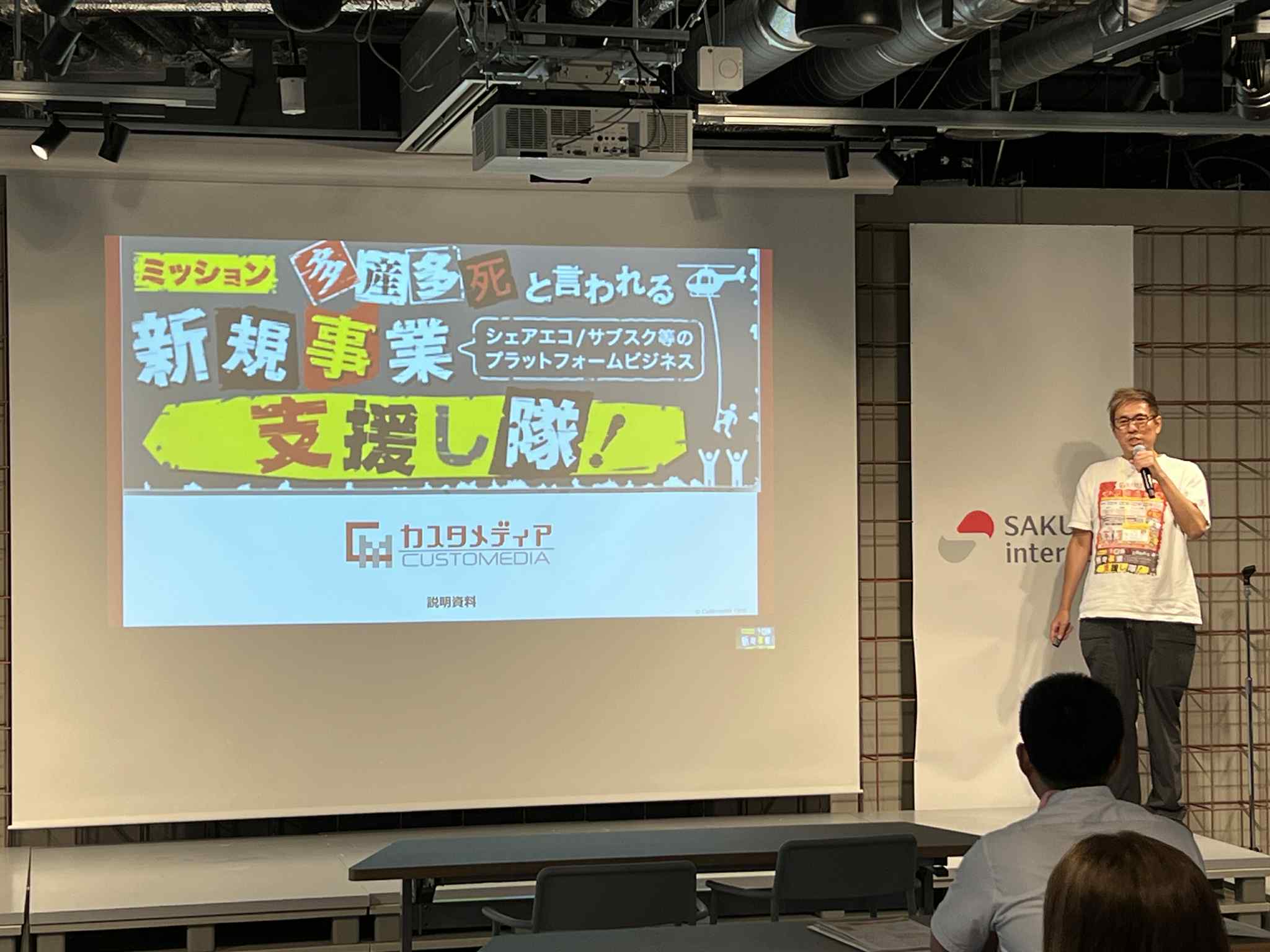 多くの方に集まりいただくなか、カスタメディアでは、ブースの出展と弊社CEOの浦坂によるピッチをいたしました。