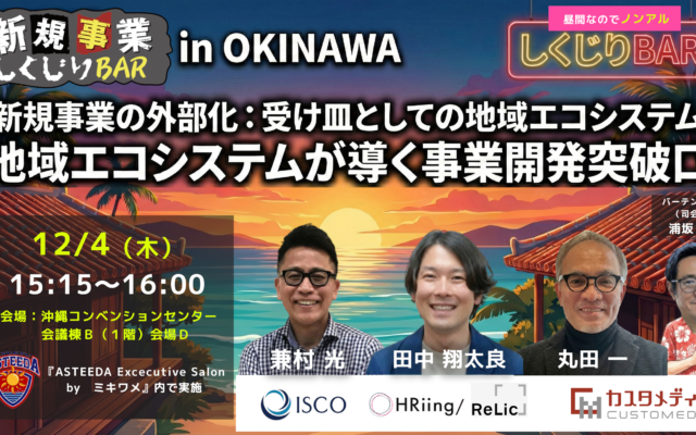 12/4(木)開催『地域エコシステム』が新規事業開発を成功に導く 新規事業 しくじりBAR in OKINAWA(アスティーダ沖縄)