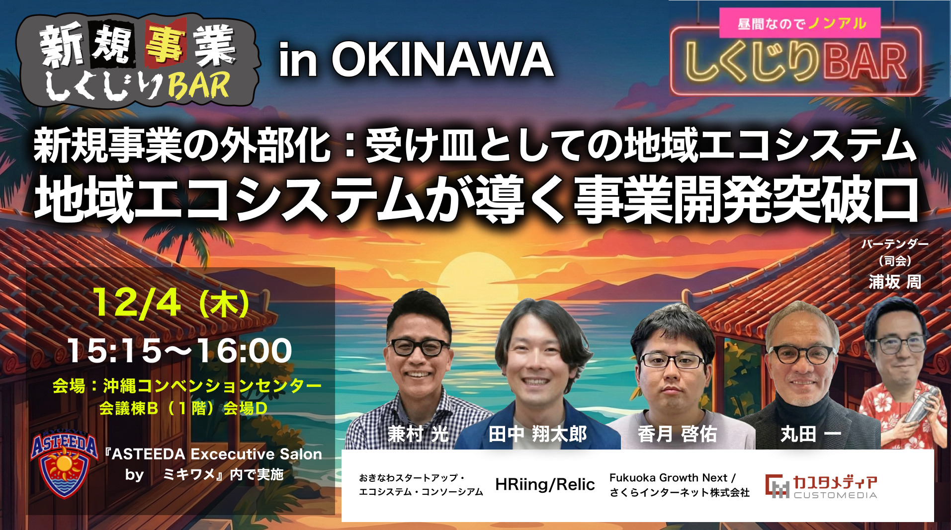 12/4(木)開催『地域エコシステム』が新規事業開発を成功に導く 新規事業 しくじりBAR in OKINAWA(アスティーダ沖縄)